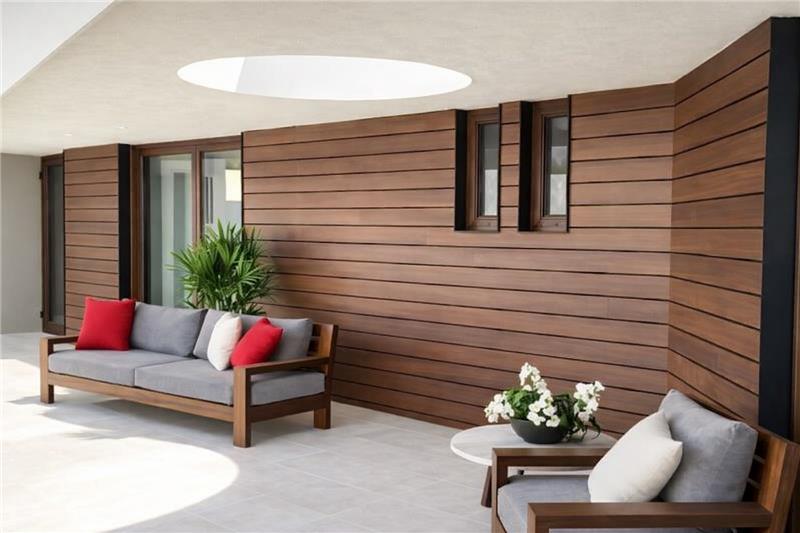 El revestimiento de exterior sintético es similar al de la madera natural y lo hace ideal para proyectos de decoración, donde se busca imitar la apariencia de la madera y mejorar la estética de edificios o jardines.